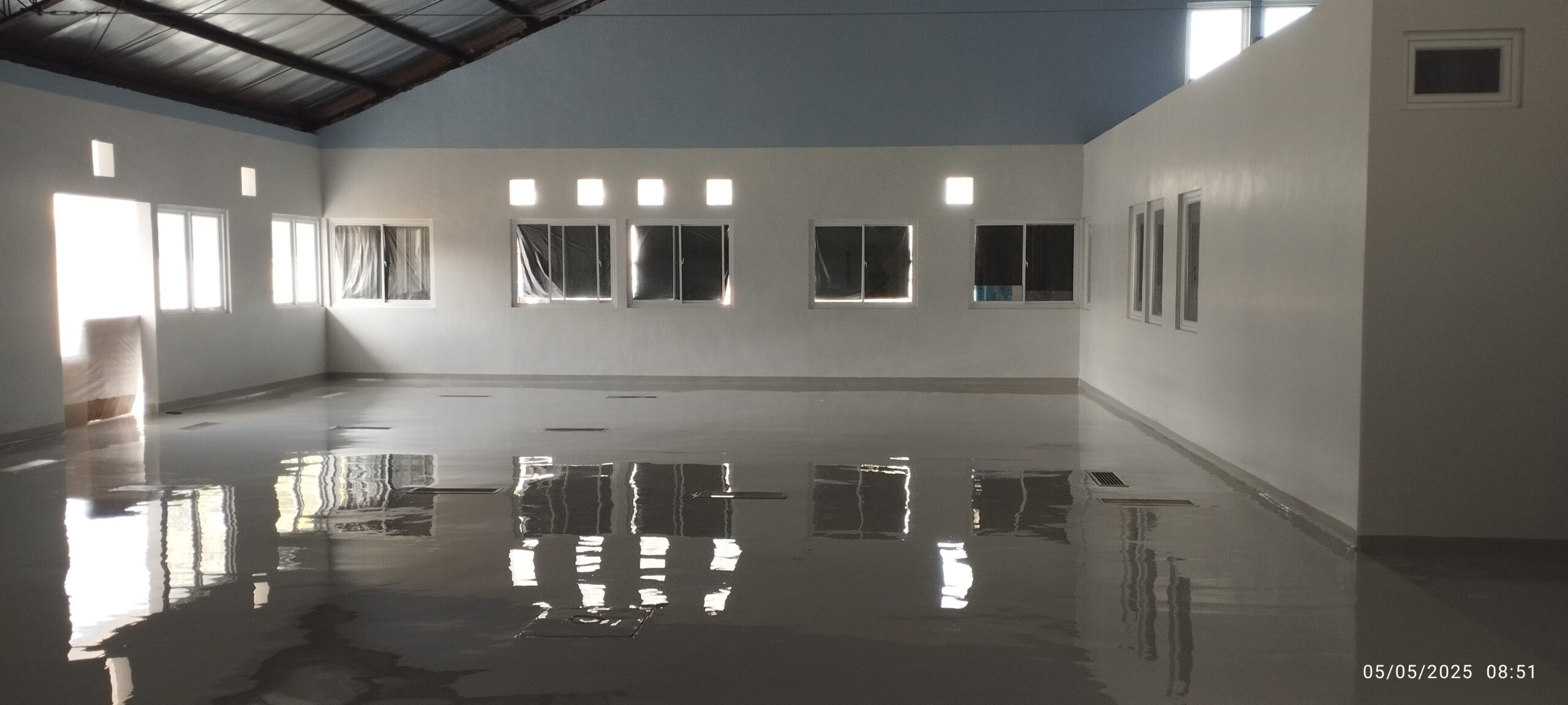 Selain fungsional, Polyfloor Epoxy juga tahan terhadap bahan kimia ringan, air, serta mudah dibersihkan, menjadikannya solusi ideal untuk dapur yang beroperasi setiap hari. Dengan pilihan warna yang rapi dan profesional, lantai dapur tetap terlihat bersih, terang, dan nyaman digunakan oleh para petugas.